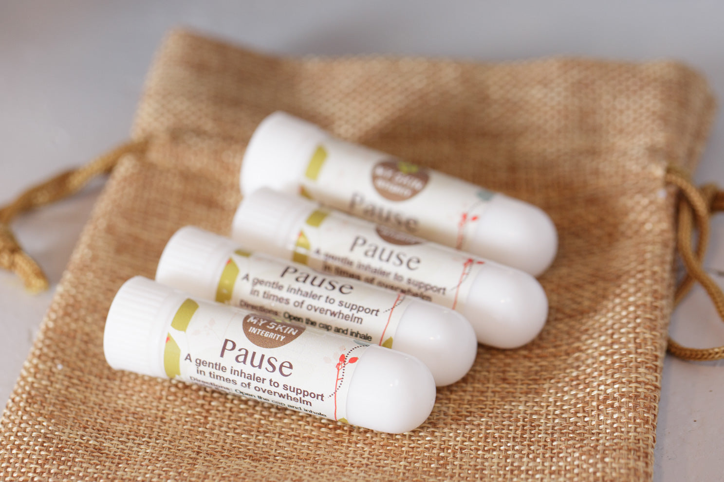 Pause Aromatherapy Inhaler – A gentle, grounding blend of sandalwood, petitgrain, cedarwood, and lime essential oils, crafted to support moments of overwhelm. This soothing aroma promotes a sense of calm and clarity, helping you reset and regain balance. Simply inhale for a mindful pause, wherever life takes you.